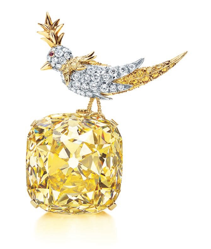 Для ретроспективы Шлюмберже в Museé des Art Décoratifs в 1995 году, которая состоялась через восемь лет после смерти дизайнера, Tiffany Diamond был помещен в одно из самых восхитительных творений дизайнера - брошь под названием «Птица на скале». Маленькое существо, сидящее на углу большого драгоценного камня, оказалось настолько популярным, что Тиффани держала его в этой оправе в течении долгого времени.