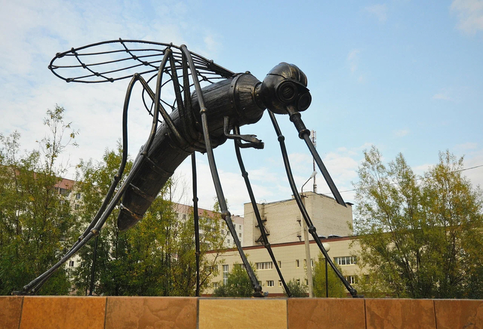 Этот огромный комар украшает одну из улиц Усинска. Посвящен он людям, которые преодолевали сотни километров непролазной тайги, кишащей комарами, чтобы найти полезные ископаемые. Угадаете вторую часть названия памятника «Комар-...»?