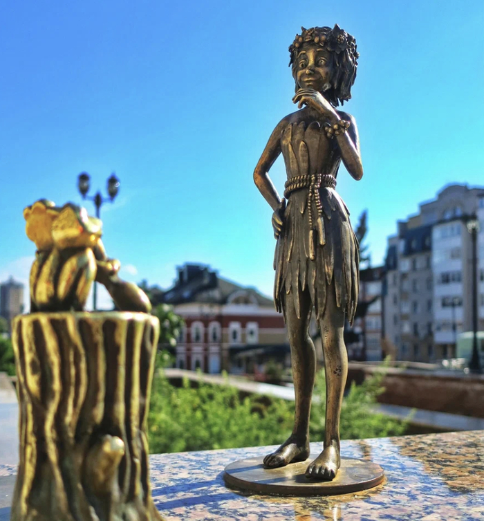 Ответ: Кикимор. Небольшие бронзовые фигуры есть во многих городах. В Калуге это космонавтики, в Калининграде — хомлины, в Костроме — зайцы, а в Серпухове — павлины.
