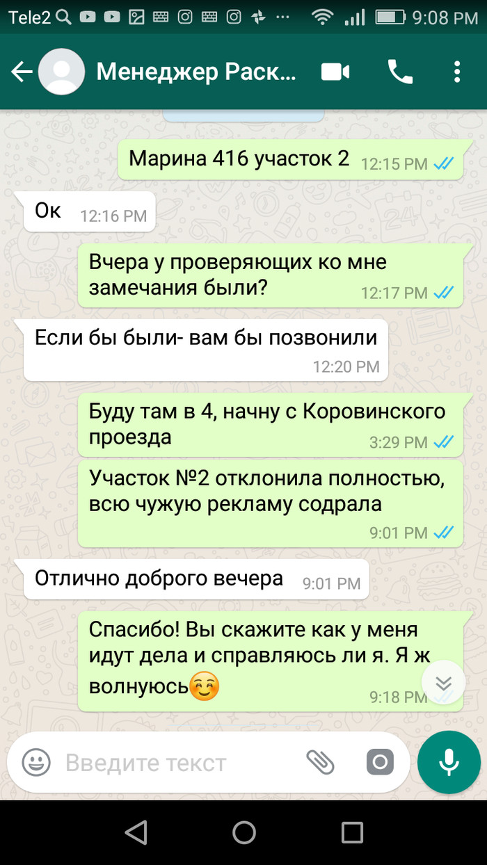 Пришла, мне дали своего менеджера, тыщу листовок вот таких.