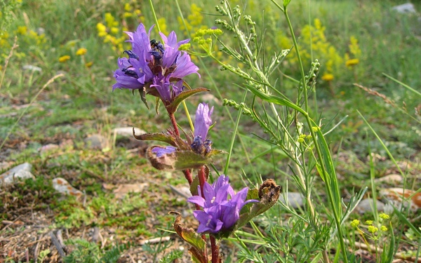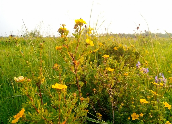Следующие несколько фото не мои, супруги. Она у нас любитель цветов. Я, к сожалению, в этой ботанике не силён. Так что если поможете с определением растений - буду признателен. На первом фото вроде бы колокольчик? А на втором - с красными "шишками" - вроде кровохлёбка? На третьем - курильский чай? Но, как принято тут говорить: "это не точно".