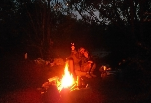 Ужин у костра и сон в палатке под песню речушки. Всё, как мы хотели.