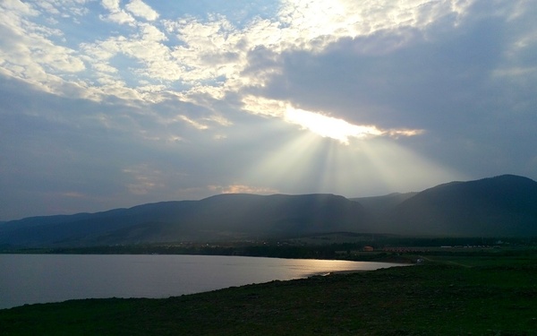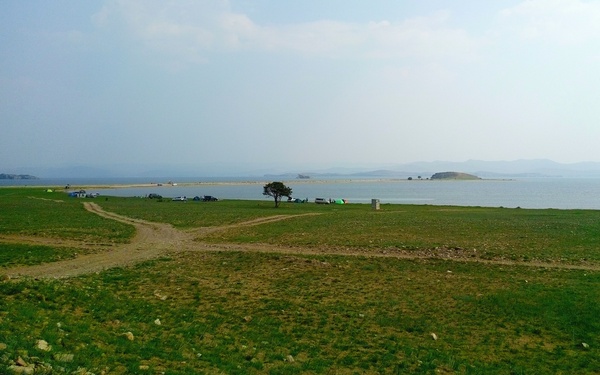 Ещё вчера, когда проводили разведку дороги, мы с сыном нашли отличную смотровую площадку, с которой открывается вид на Хужир-Нугайский залив и просторы Малого Моря.
