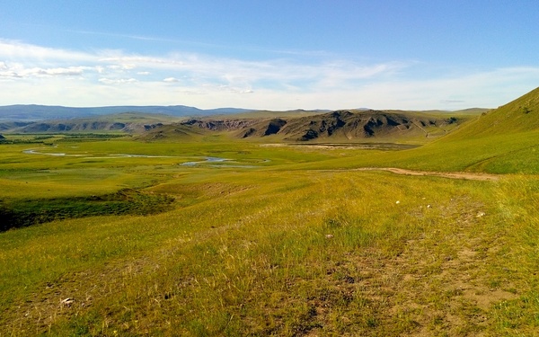 Подумал - может и здесь надо вниз спуститься, в дельту Сармы? Там должно быть течение поспокойнее, заводи всякие... Забегая вперёд скажу, что мы ошиблись. Местные нам рассказали, что за хариусом надо наоборот вверх по Сарме идти! И лучше вообще не отсюда, а гораздо дальше проехать. И вообще надо на квадроцикле толковом или на очень хорошем внедорожнике. Но там да, рыбалка зачётная. Пишут в рекламе: