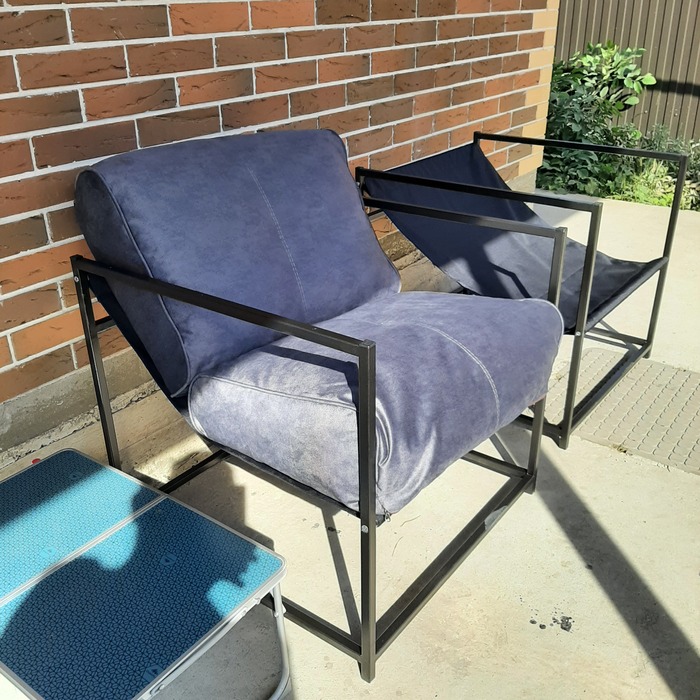 Решил сделать удобные кресла на веранду. Увидел в интернете фото кресла в виде куба, решил повторить. Прикинул размер грани, в 70 см будет достаточно. Режем готовим втулки под потай.