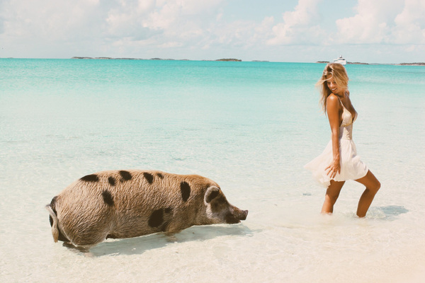 А все потому, что они свиньи, вдобавок еще и голодные. Может ли такое быть в реальности? Да, еще как может. Потому что только на Багамах живут свиньи, которые чувствуют себя в соленой воде еще более комфортно, нежели обычная свинья, лежа в грязной и глубокой луже. И эти багамские свинки с восторгом принимают от туристов угощения и корм.