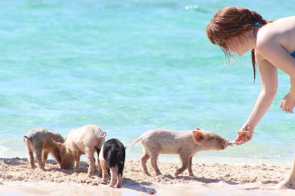 На расположенном в западной части острова пляже Pig Beach в настоящее время обитает порядка 40 свиней. Живут они себе и даже не подозревают, как крепко им подфартило в этой жизни. Такой роскоши и такому блаженству не то что свиньи, люди позавидуют!