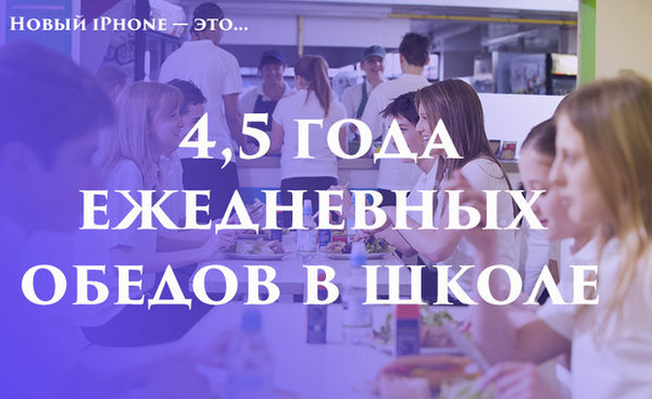 Стоимости нового iPhone также хватит, чтобы ваш ребенок питался в школе на протяжении четырех с половиной лет. Согласно тарифам, в день на это уходит около 2,5 рубля. Отказавшись от iPhone, вы сможете обеспечить своего ребенка питанием почти на всю среднюю школу.