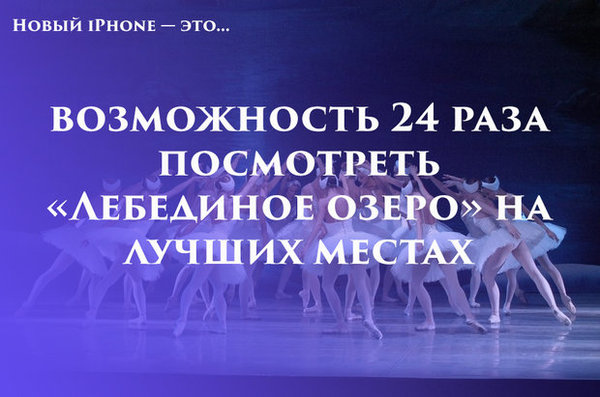 Также новый iPhone — это возможность 24 раза посмотреть «Лебединое озеро» в Театре оперы и балеты. Причем сидеть вы будете на самых хороших местах. Если взять бюджетные билеты, то на эту постановку можно сходить 72 раза!