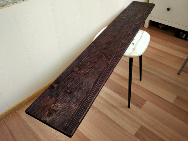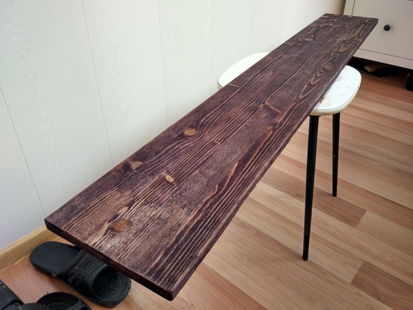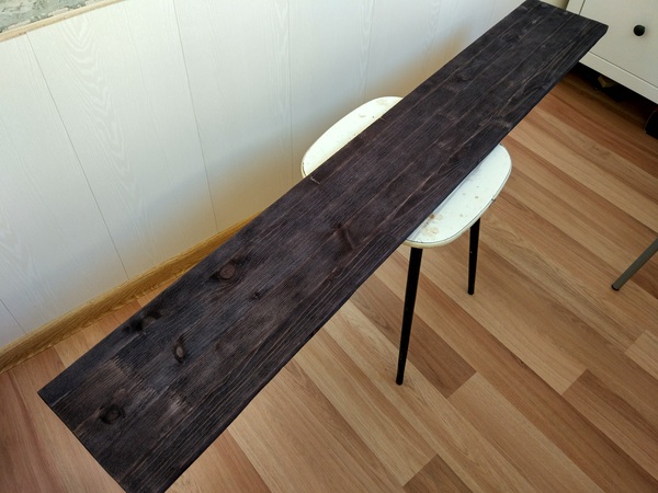 Для начала я попытался быстро найти сосновую доску нужного мне размера, что оказалось задачей нетривиальной. Строганую не найти, а нестроганые вообще не вариант, при отсутствии должной сушки, станка и пространства (читай в обычной городской квартире). В общем купил я обычный мебельный клееный щит.