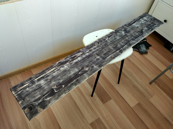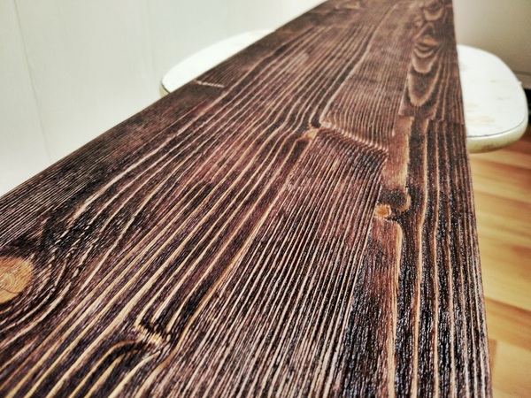 После обработки щетками и немного шкуркой (чтобы ворс убрать) доска стала выглядеть вот так. Уже хорошо заметна текстура дерева, но этого мало само-собой. Нужно обработать морилкой, и вот тогда...