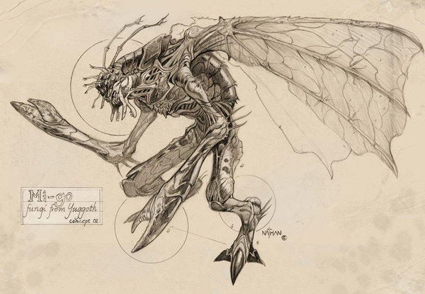 Ми-Го - грибы , если Старцы относительно понятны людям и предположительно у них был социалистический строй к слову Старцы также размножались спорами , то про Ми-го с культурной точки зрения известно довольно мало.