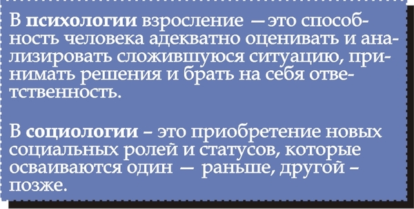 Взросление подразумевает определенное планирование жизни и подчинение этому самому плану, а, следовательно, это контроль над собственной жизнью, решениями, выбором.