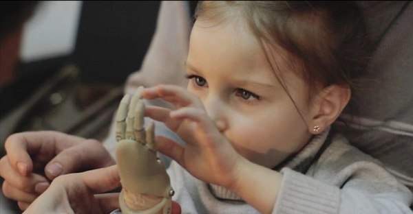 Такими протезами пользуются уже 6 детишек. Эту девочку зовут Аня.