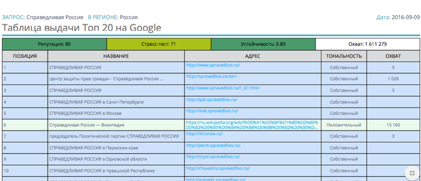 Такие цифры у Справедливой России сложились из-за того, что в выдаче поисковиков присутствует много собственных ресурсов и всего один негативный – otzyv.com.