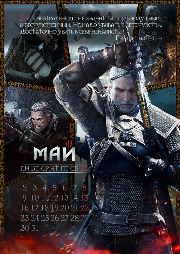 Календарь на 2016 год в стиле "The Witcher" (Ведьмак).