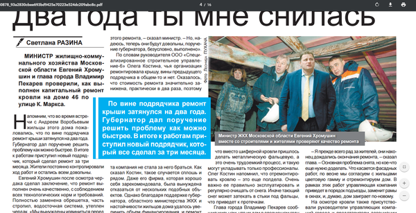 Газета "Новости недели" в Электростали позорно и ужасно прикрепила в своем сегодняшнем выпуске к реальной фотографии министра жкх мо Евгения Хромушина! На самом деле министр там действительно был! Мы видели и есть тому фотографии! Ужасный непрофессионализм газеты и их редакторов, а также непонятно - зачем они вообще это сделали!!!