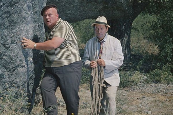 Так что вопреки авторскому замыслу комедии, ее по месту съемок можно было бы назвать «Крымской пленницей». Фильм Леонида Гайдая практически весь снят в Крыму. Кавказа там совсем чуть-чуть – съемочная группа выезжала на три дня в окрестности Сочи, где на реке Мзымта снимали «сплав Шурика в спальном мешке в бурных водах».