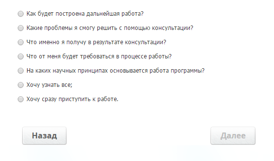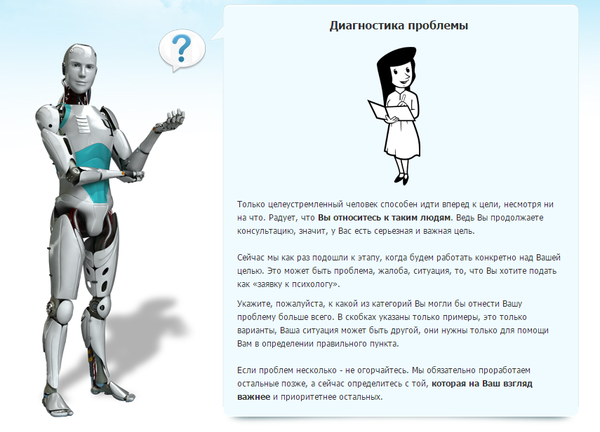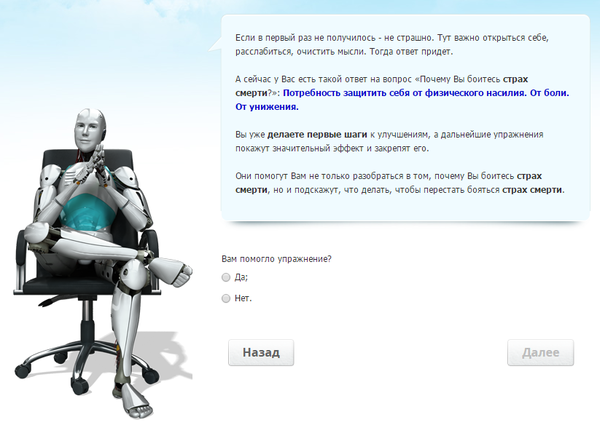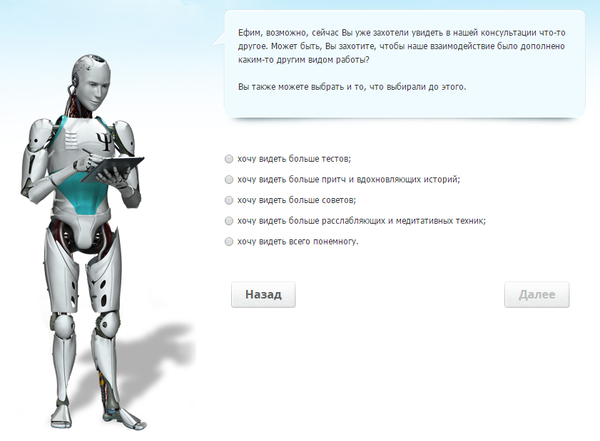 Затем спрашивает чего бы вам хотелось больше от робота-психолога.
