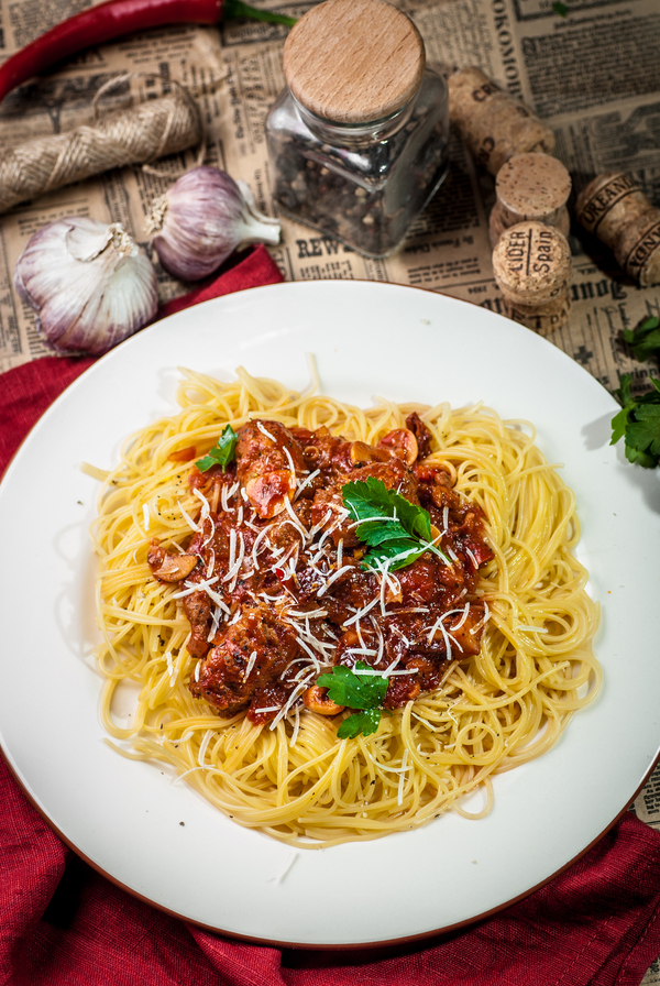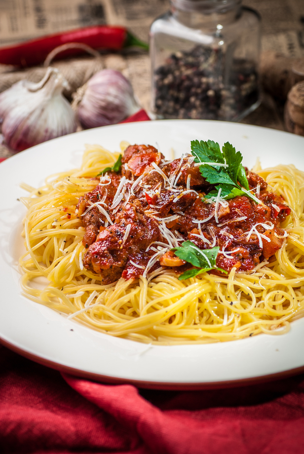 Пересмотрев отрывок из фильма я увидел эту пасту яркой ,эмоциональной, пахнущей чесноком, томатами и вином, пышущей энергией и силой. Если конечно позволительно так высказываться о спагетти с соусом.