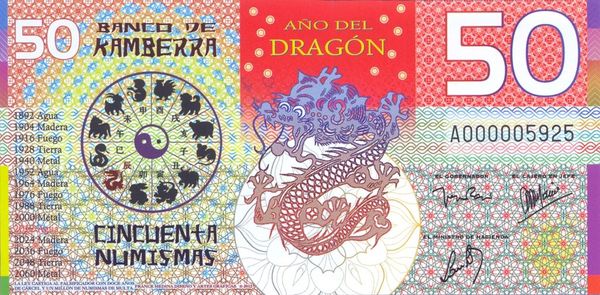 Несмотря на то, что страна выдуманная, с банкнотами все по-взрослому. Есть ряд защитных элементов. Из тех что визуально удалось определить не имея в руках реальной банкноты: микротекст, голограммы, защитная нить, рельефные метки для слабовидящих и что-то похожее на кольца Омрона. А если верить двум найденным описаниям банкнот от Banco de Kamberra —используются еще водяные знаки, скрытые изображения, светящаяся в ультрафиолете краска и много другое.