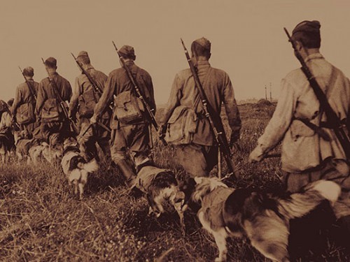 Собаки-истребители танков.В советской армии были специально обученные собаки,на которых вешалась взрывчатка.Весной 1942-ого в боях под Москвой эти собаки обратили в бегство несколько десятков немецких танков.Позже конструкция сумок со взрывчаткой изменилась,что позволяло собакам сбрасывать сумки пробегая под днищем танков,тем самым у собак оставались шансы выжить.Так же таких собак использовали связисты,для прокладки кабеля.