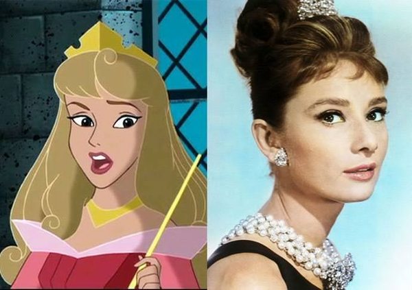 В качестве опоры для аниматоров в изображении спящей красавицы Авроры стилист Том Орива взял позы и фигуру обожаемой Одри Хепберн