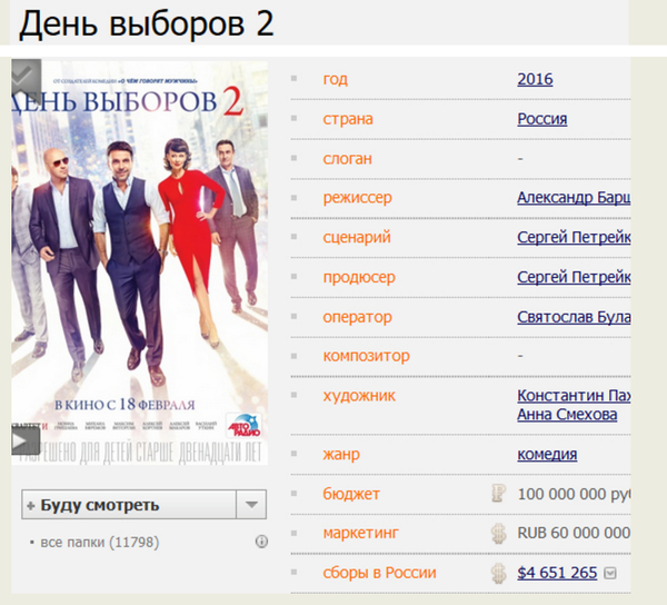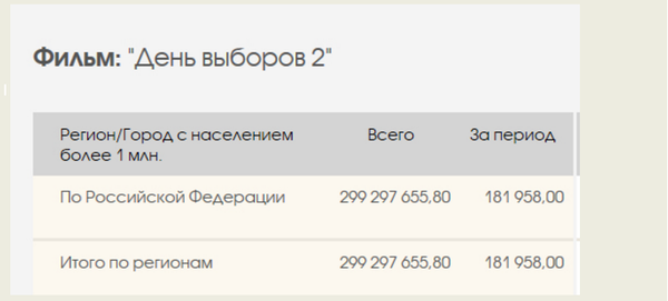 Берем другой недавний фильм - например, "День выборов 2". По "Кинопоиску" - $4,6 млн.