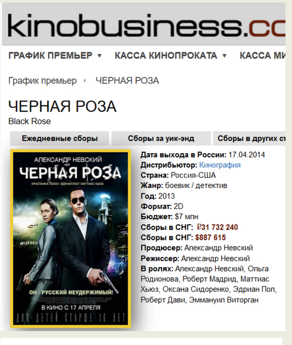 Впрочем, на Kinobusiness.com приводятся данные, совпадающие с "Кинопоиском".