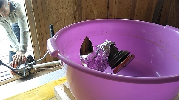 Установили аппарат в таз по центру, обмотали фольгой, что бы не запачкать:)