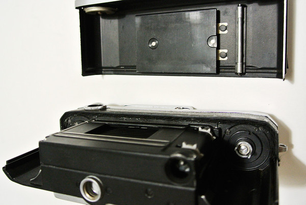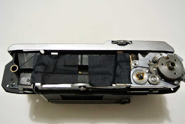 Перед установкой верхней крышки в щель между ней и корпусом вклеивается уплотнитель. Без него так же есть риск засветить пленку в фотоаппарате.