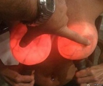А чего минусуете? Прав же! этой фотке был посвящен целый пост, в итоге опытным путем пришли к мнению - что натуральное - не светится, и на фото, скорее всего, силикон.