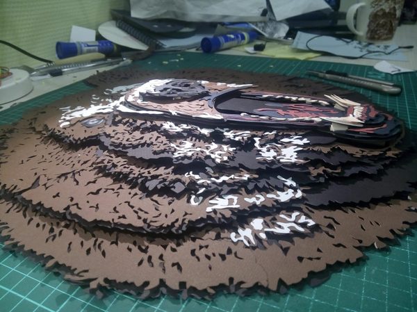 Мне говорят, что я художник, который работает в векторной графике, просто делаю все неправильно — там, где надо на планшете, я делаю руками и ножами из картона. Один парень написал мне, что фотошоп может быстро поделить рисунок на цвета. Очень жаль, что он не видит разницы. Нужно понимать, что фотошоп делит, опять же, буквально. Ему все равно, ямочка это или глаз, он рассчитывает чисто математически. А у меня не так, в этом и самое сложное, и в то же время самое интересное. Мне больше всего нравится продумывать и пробовать, как интереснее положить бумагу, может боком, например, тогда она по-другому заиграет.