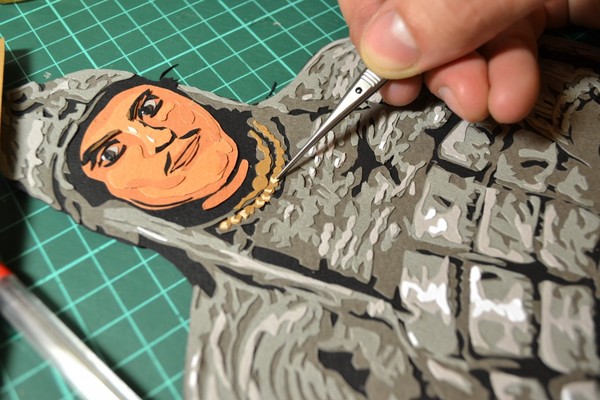 Материал моих картин — картон, причем самый разный. Однажды я задумал выполнить портрет в необычной технике: решил сначала вырезать силуэт, а потом дорисовать черты карандашами и ручками. Попробовал, подумал, что можно вовсе обойтись без карандашей и ручек — все вырезать. Так получилась моя первая картина. Потом, время от времени, делал такие картины в подарок, на заказ, и год назад настроился на создание серьезных картин, в собственную коллекцию.