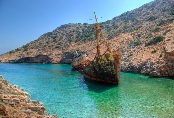 Судно «Semiramis» (остров Андрос, Греция) Это пассажирское судно, которое теперь выглядит как мрачный корабль-призрак, село на мель у греческих берегов в 1954 году.