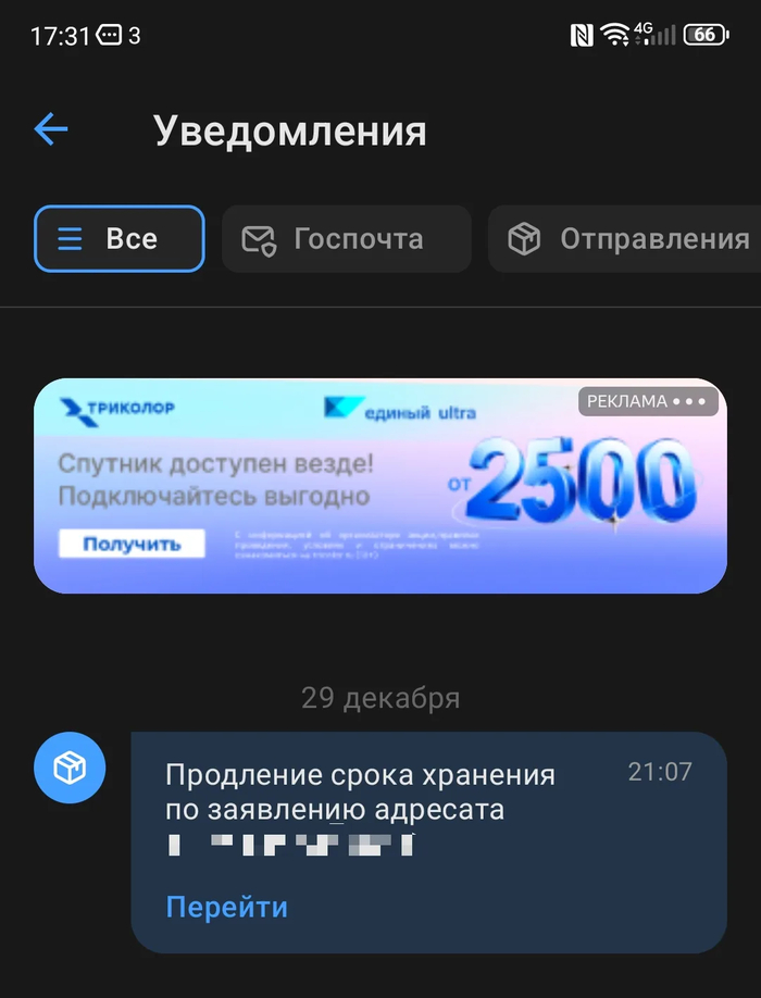 Смотрю сериальчик и слышу: пришло уведомление, ваш заказ продлён еще на 7 дней... по заявлению адресата.