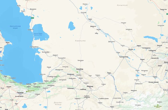 Таааааак. Он точно должен быть где-то здесь, у меня по географии была четверка. Идем по известным ориентирам. Столица - Ашхабад. Есть. Пустыня Каракумы. Есть. Я на верном пути. Тактактаааак... А вот город Мешхед, юго-восточнее Ашхабада, это еще она, родина целеустремлённых крылатых скакунов? Или уже нет? А где границы, Яндекс? Где названия стран, сука?! Откроем недружественный, гадкий гугол.