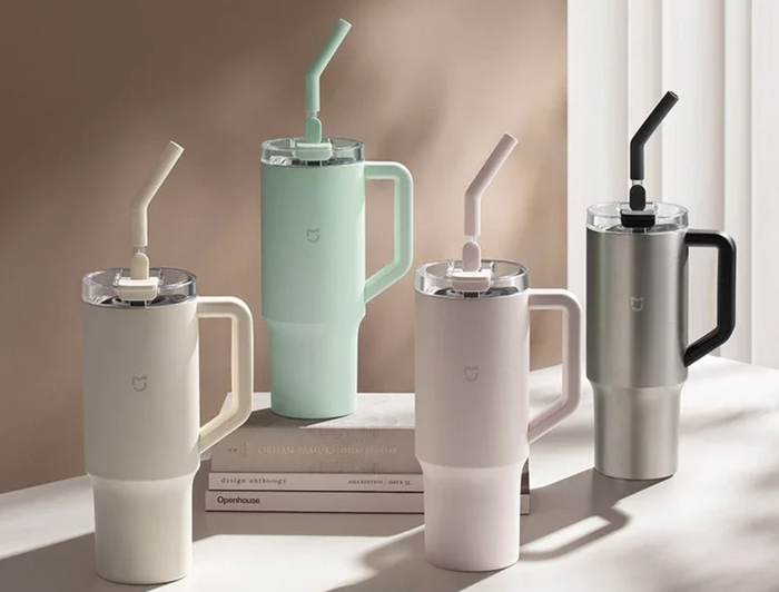 Соломенная термочашка Xiaomi Mijia объёмом 1 литр сочетает практичность и современный дизайн, позволяя удобно брать любимый напиток с собой.