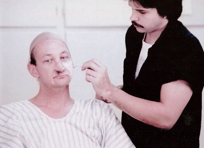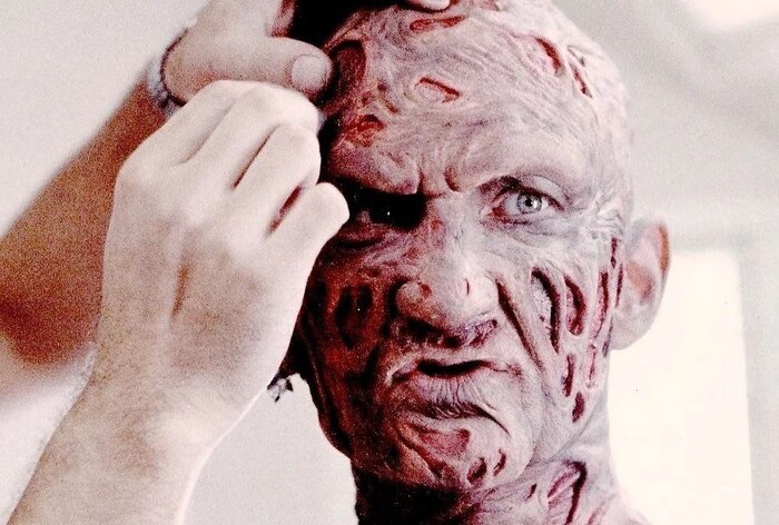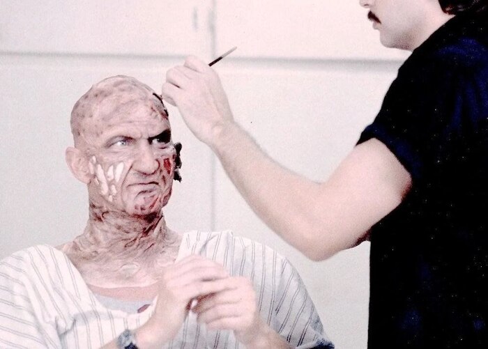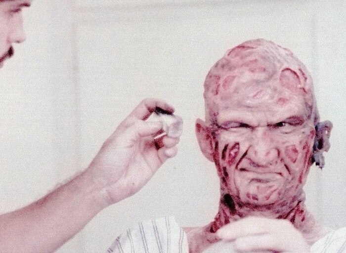 Преображение Роберта Инглунда, благодаря усилиям гримера на съемках культового хоррора "Кошмар на улице Вязов" (1984).