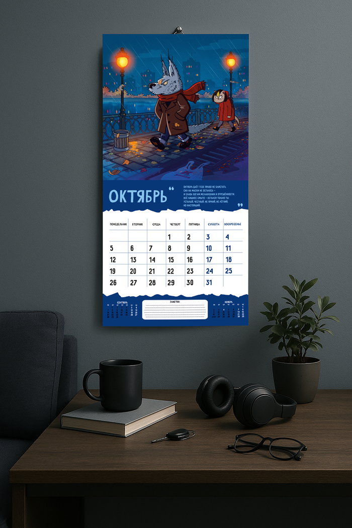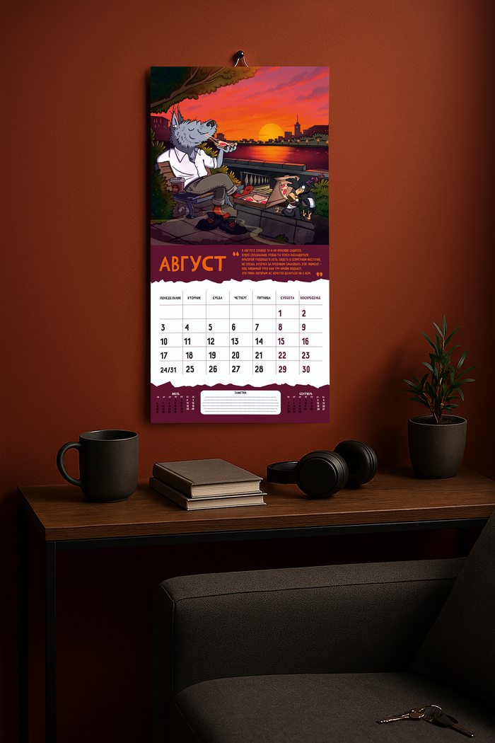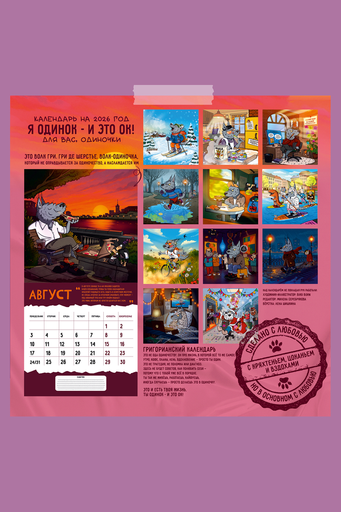 Календарь готов! Я зову его Григорианский календарь, так как главный его герой волк Гри.