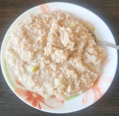 Завтрак Гуркулес с яблоком. Больше яблок нет. А ещё я немного снизил порцию Геркулеса, я раньше по 100 грамм ел, а теперь по 70. Вроде бы столько достаточно для насыщения. Хотя это сказывается на белке и калориях в худшую сторону (стало меньше на 4 грамма белка и на 100 калорий), может быть потом увеличу обратно.