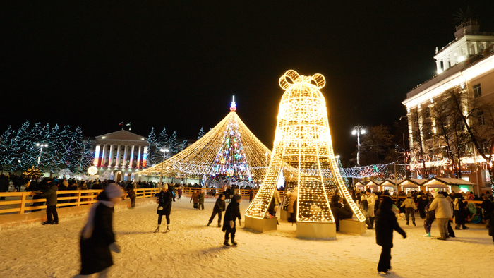 А это каток на центральной площади. Опять же не каток у ГУМа на красной по масштабам, но и бюджет у города поменьше, как мы помним)