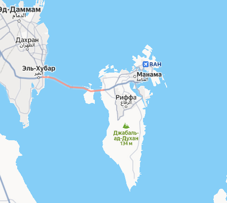 А если вы решили бы пересечь Бахрейн с запада на восток, то поездка бы получилась в три раза короче. Расстояние всего 18 км. Такие цифры говорят о том, что Бахрейн настолько мал, что его с большим трудом можно разглядеть на карте. Попробуйте сами.