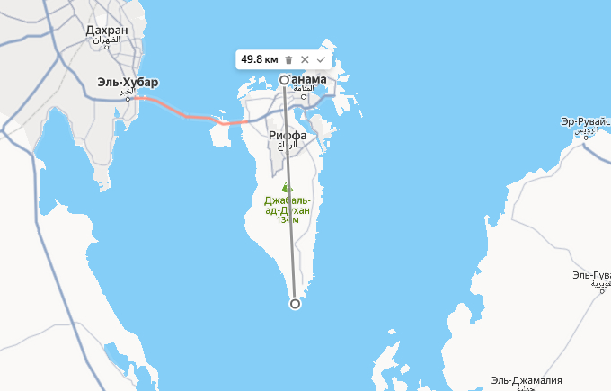 Протяжённость маршрута каких-то 50 километров. Вот ровно такая же длина у Бахрейна. Буквально час езды.