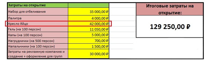 Обратите внимание на то, что самая дорогая позиция по франшизе это кресло-яйцо. Чувствуете масштаб, да?