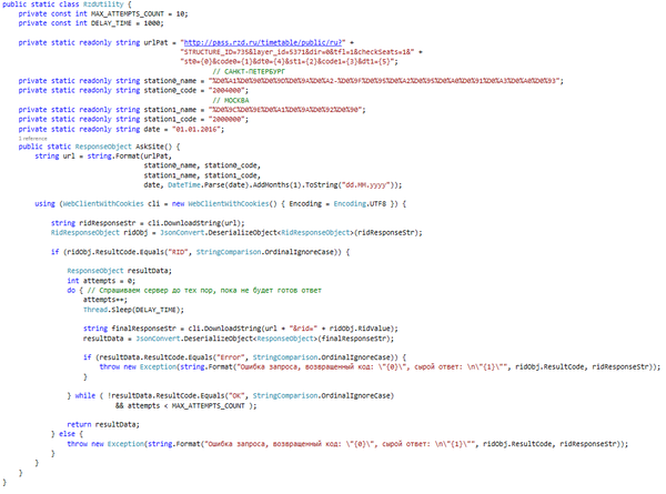 Теперь мы можем показать Анечке, как можно приносить нам апдейты с сайта РЖД.
