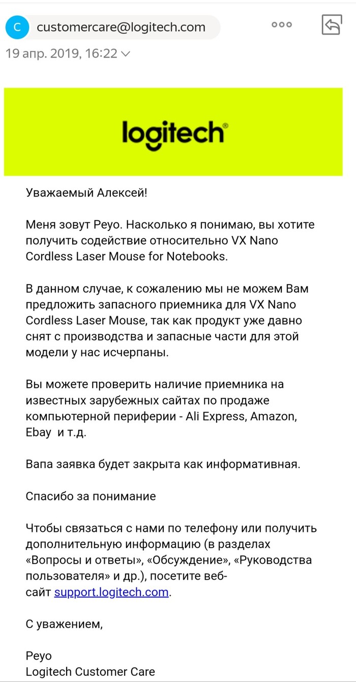 Отправил значит слезное письмо в поддержку, мол: "Любимая мышь и все такое, (правда удобная) поможИте чем сможИте.