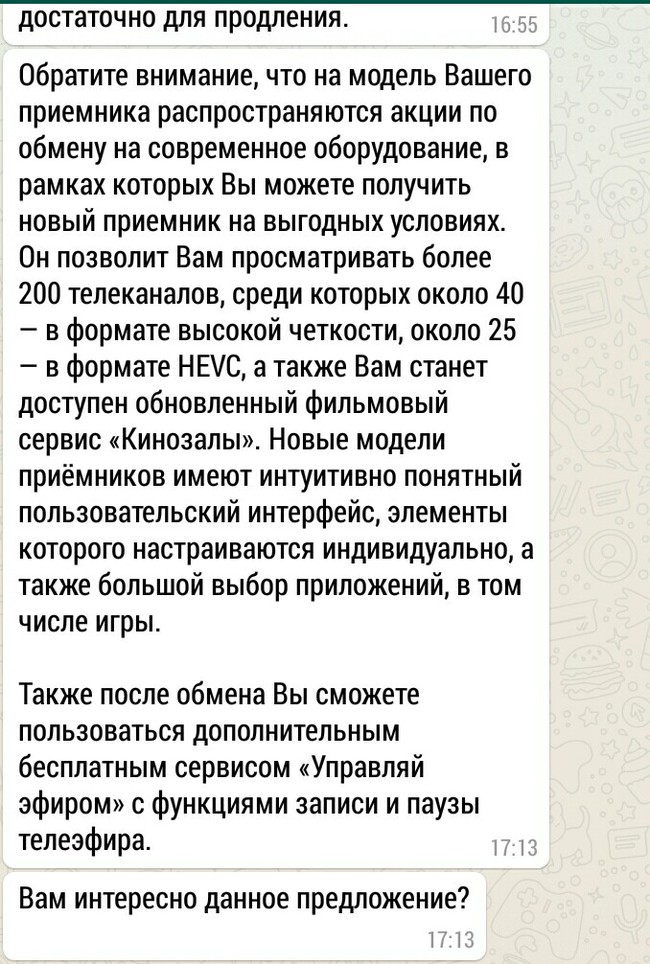 - О: Я за приставки вам ничего не говорю. Заявка ваша на проверку ТВ приставок в работе, ожидайте решения.