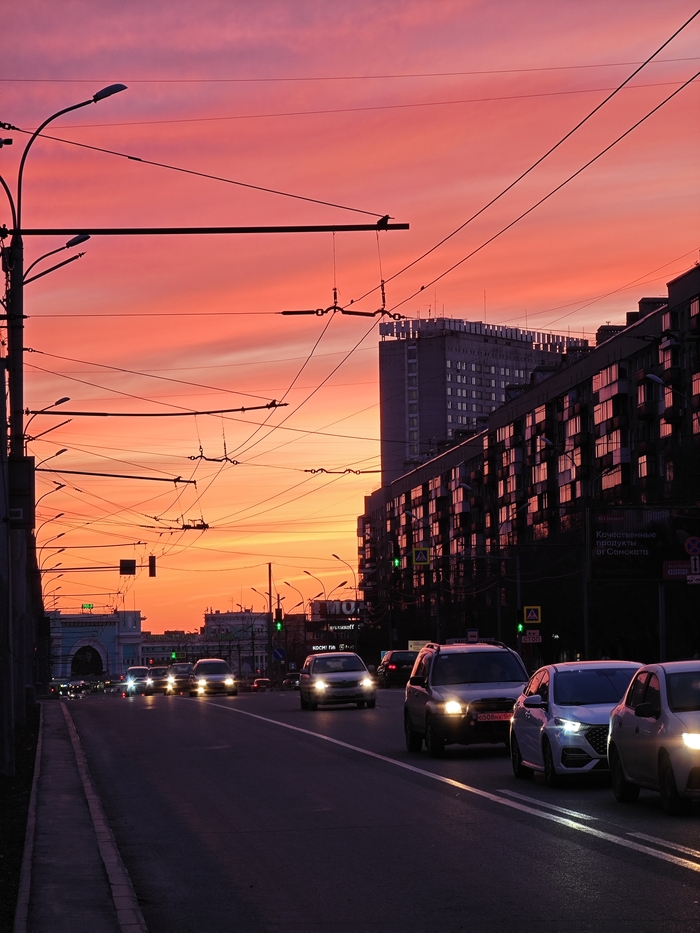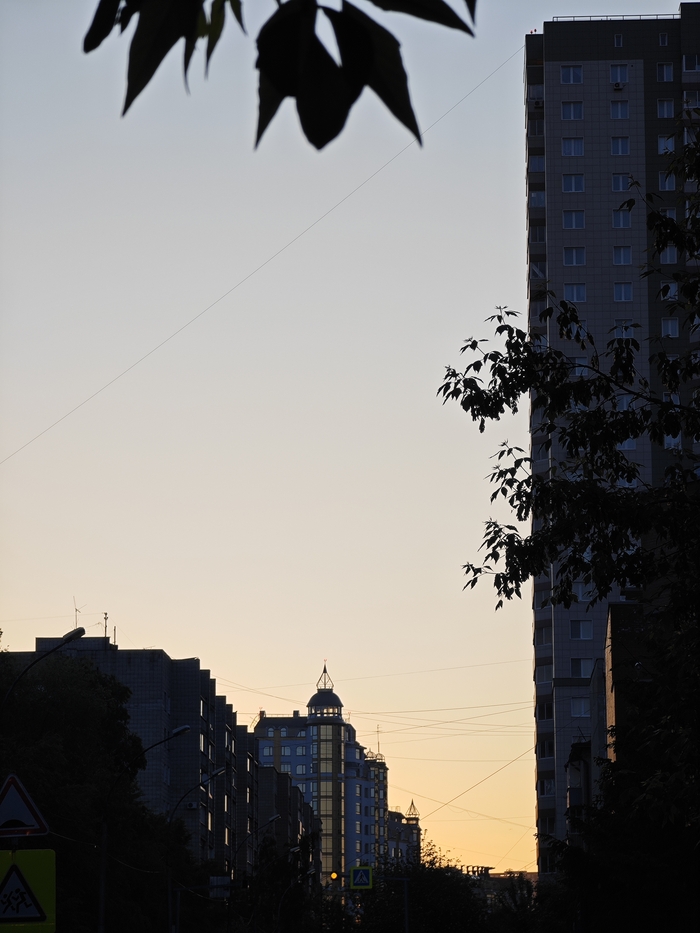 Это настоящий цвет заката. Слева, как и обещал, жилой комплекс, который вы позже увидите вблизи в других постах. Съёмка велась где-то возле жилого комплекса по ул. Военная, 9/1.