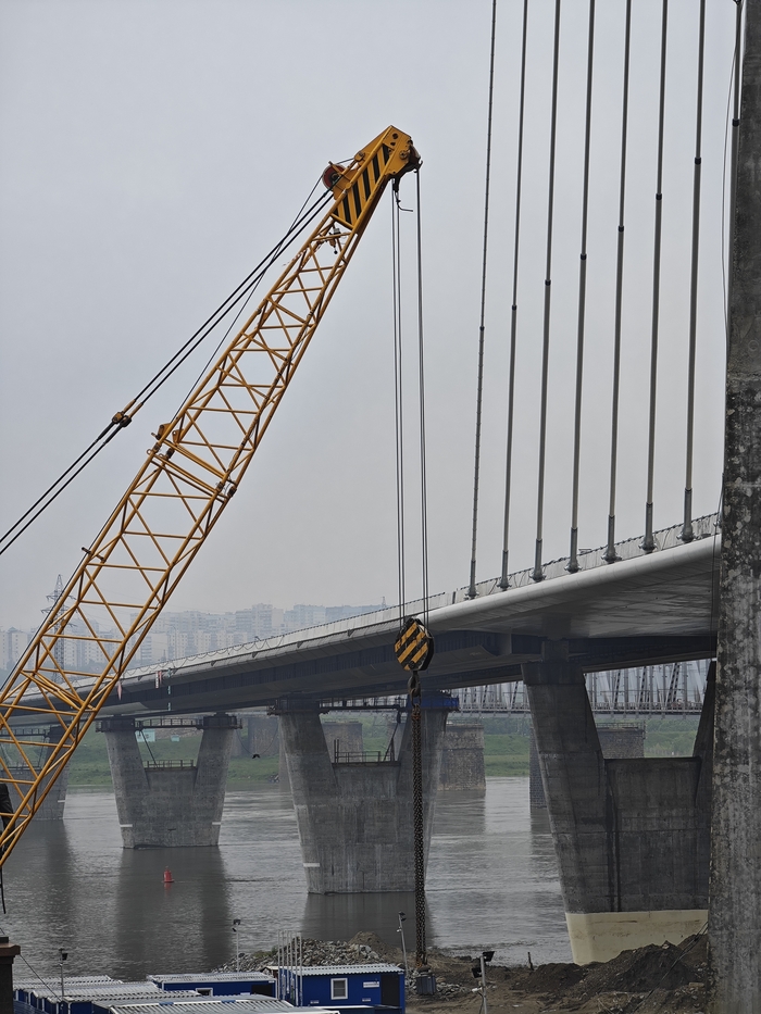 Два моста. Октябрьский (автомобильный) и перед ним метромост. Очень классно находиться рядом и слушать, как едет метропоезд, звук классный.